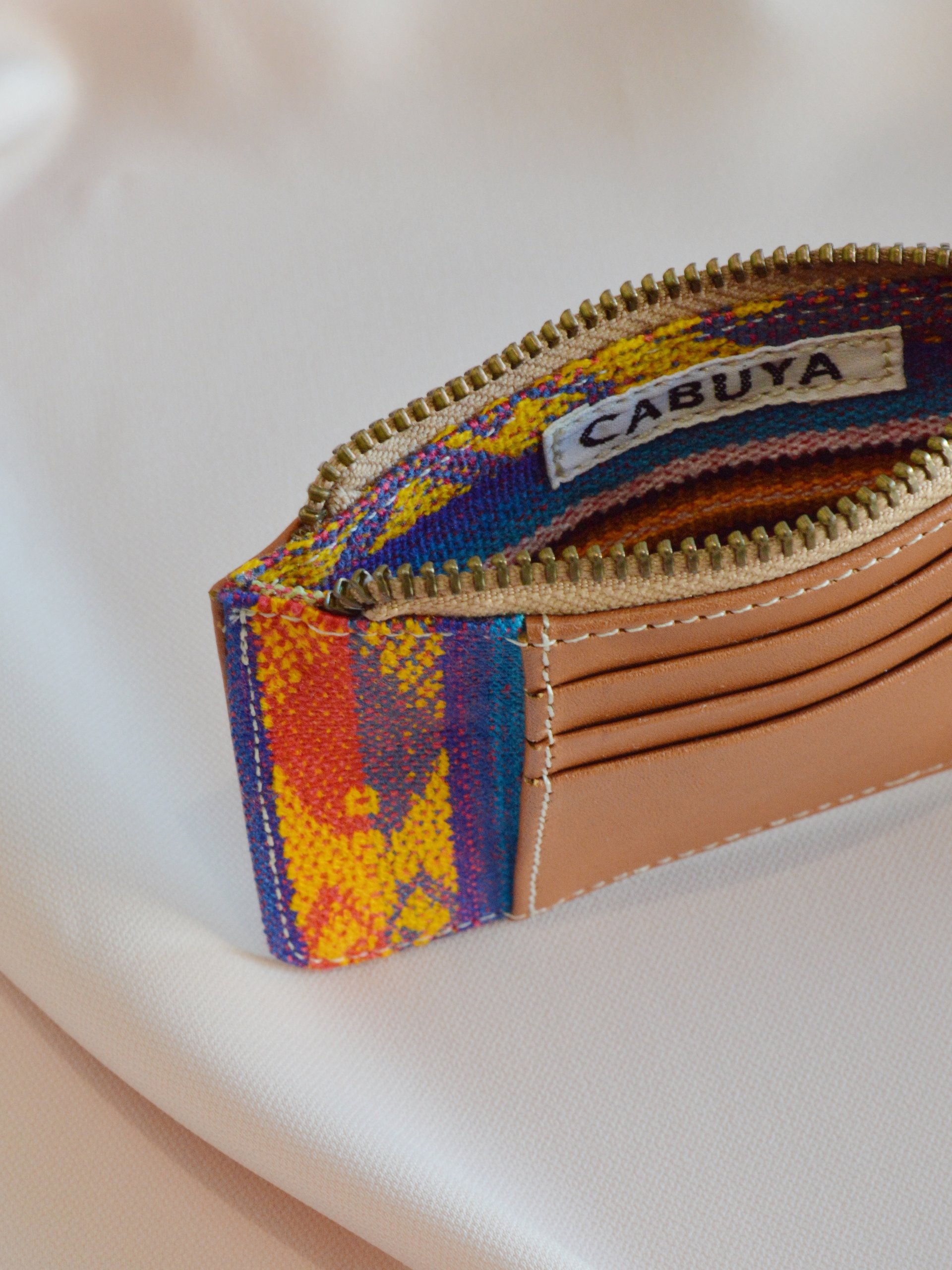 Perfect for carrying cards, coins and folded banknotes; Made with natural leather and Andean fabric on the outside and inside of the purse.