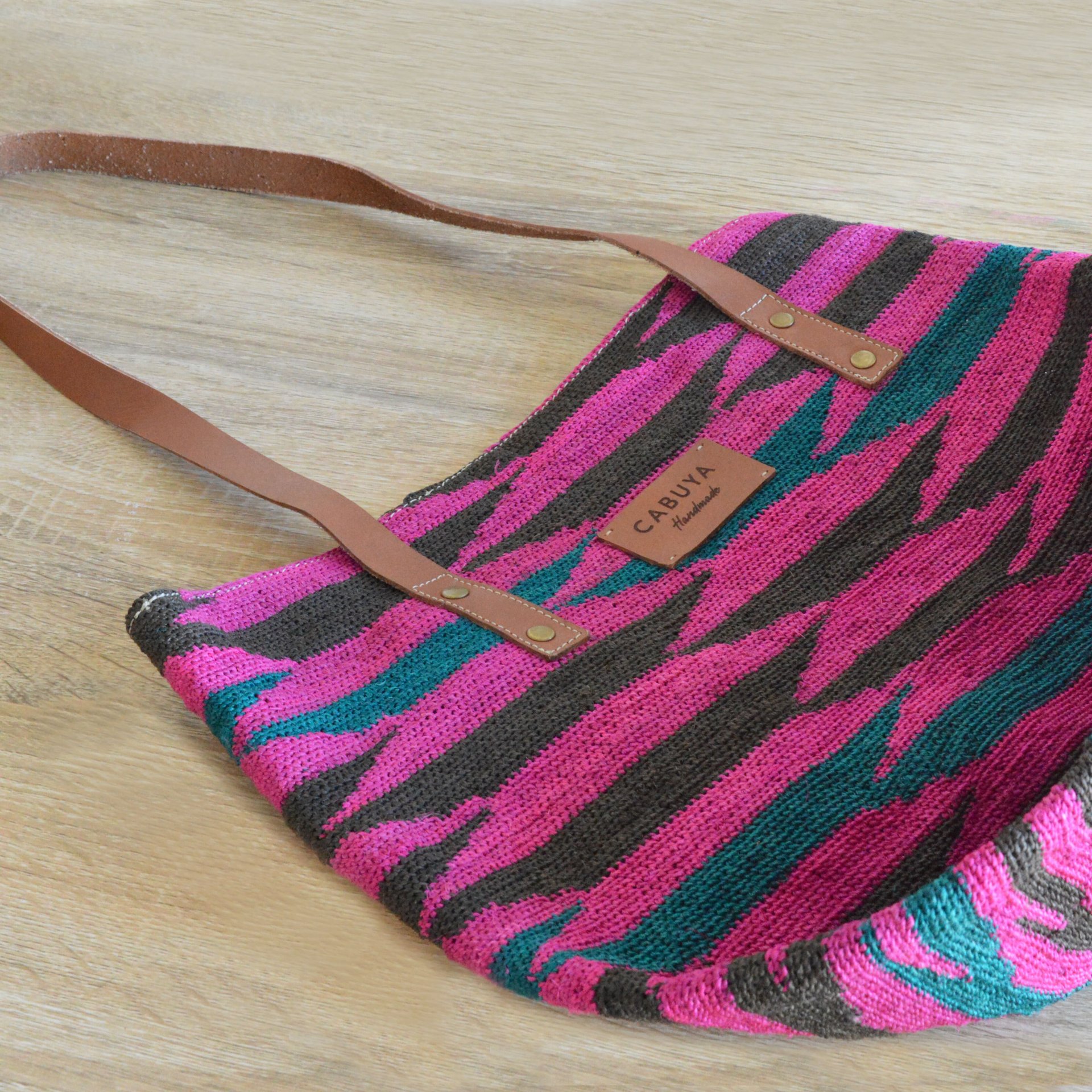 Shigra Bags 100% hand-made by indigenous women from the Andean Ecuadorian region; the bags are woven using natural cabuya fiber with handles made by high-quality natural leather hand-tanned.